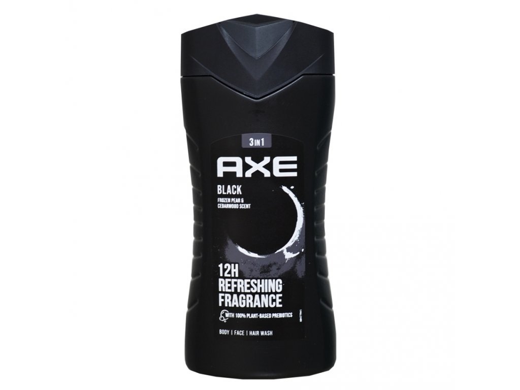 Sprchovací gél Axe Black s objemom 250 ml dôkladne umýva pokožku, revitalizuje, osviežuje a regeneruje. Vhodný pre všetky typy pokožky a na každodenné použitie. Dermatologicky testovaný. Základné vône - jantár, cédrové drevo a vanilka. Srdce - levanduľa, pelargónie a nové korenie. Hlava - kardamon, zázvor, grep, hruška a pomaranč.