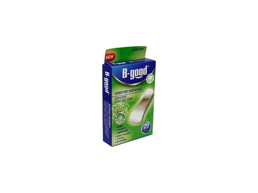 B-Good Sensitive náplaste sú vhodné zvlášť na citlivú pokožku. - vodeodolné- priedušné - umožňujú dýchanie pokožky- flexibilné- hypoalergénne- bez latexu Použitie: podľa potreby, vhodné aj pre citlivú pokožku, na ošetrenie bežných poranení, ako sú drobné rany a odreniny. Balenie obsahuje: 20 kusov náplastí vo veľkosti: 19mm x 72mm. Skladovanie: skladujte na suchom mieste. Krajina pôvodu: Turecko.