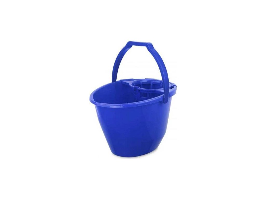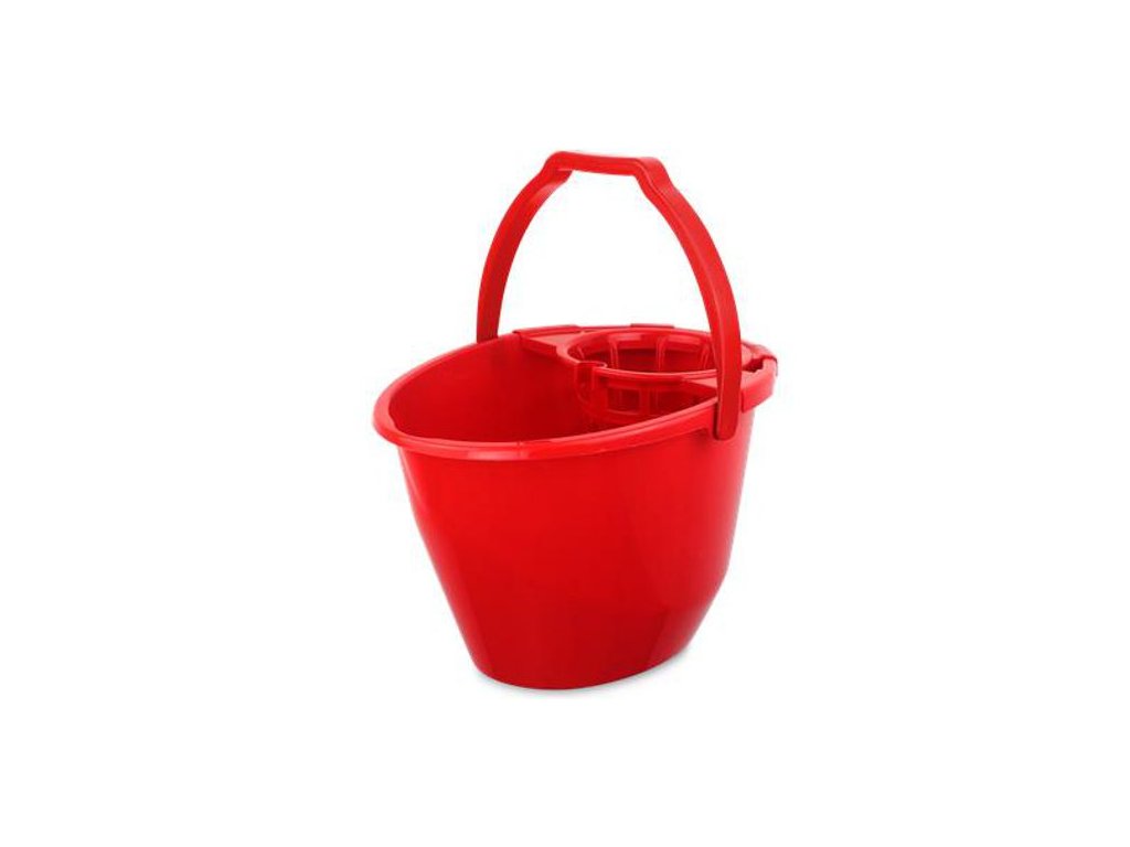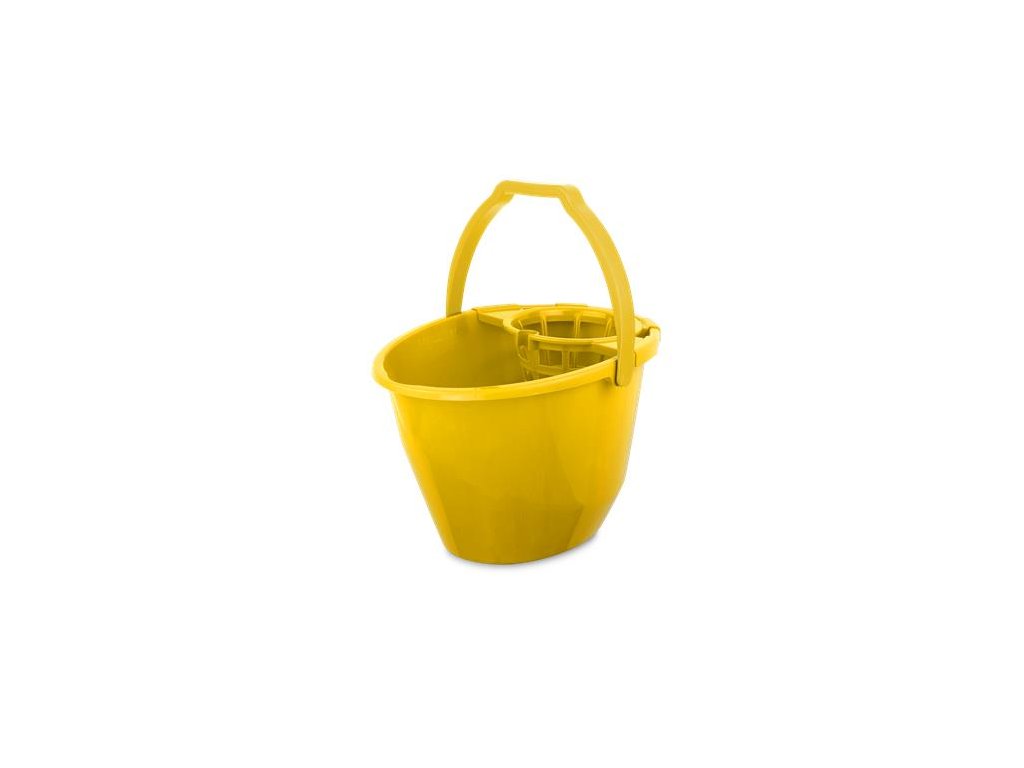 11 litrové oválne vedro so žmýkacím košom pre strapcové mopy, s hrubou stenou, s vyrovnaným ťažiskom, výlevkou a ciachovaním na vnútornom boku.
