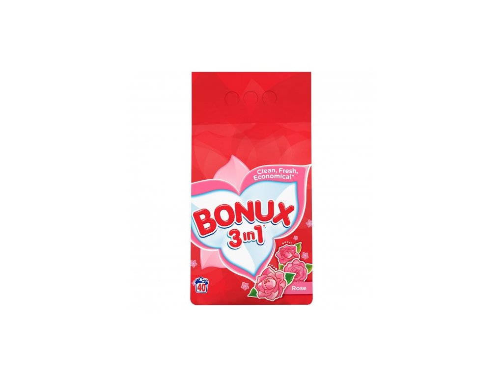 Univerzálny prací prostriedok. Účinný pri teplotách 30°C, 40°C, 60°C, 90°C. Použitie pre 4-5 kg pranie. Špičkový prací prášok Bonux pre jemnosť a sviežu dlhotrvajúcu vôňu Vašej bielizne, ktorá vydrží od rána až do večera. Obsahuje nové aktívne častice pre dokonalejšie pranie a zložku zabraňujúcu usadzovaniu vodného kameňa. Pre jemnosť a sviežu dlhotrvajúcu vôňu Vášho oblečenia. S vôňou kvetov ruží. Pred praním preštudujte štítok na odeve s doporučenými teplotami pre bezpečné pranie. Nevhodné na vlnu a hodváb. Bonux Bonux Rose Fresh 2kg = 20 pracích dávok..