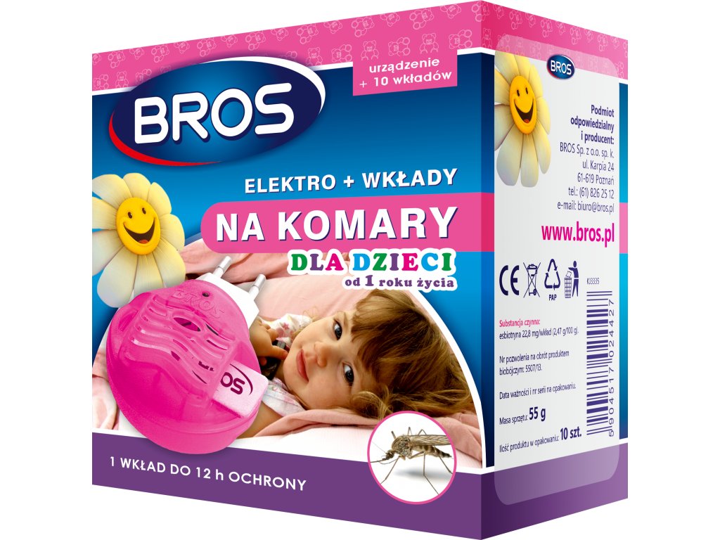 Bros Sensitive elektrický odparovač proti komárom + 10 vankúšikov pre deti