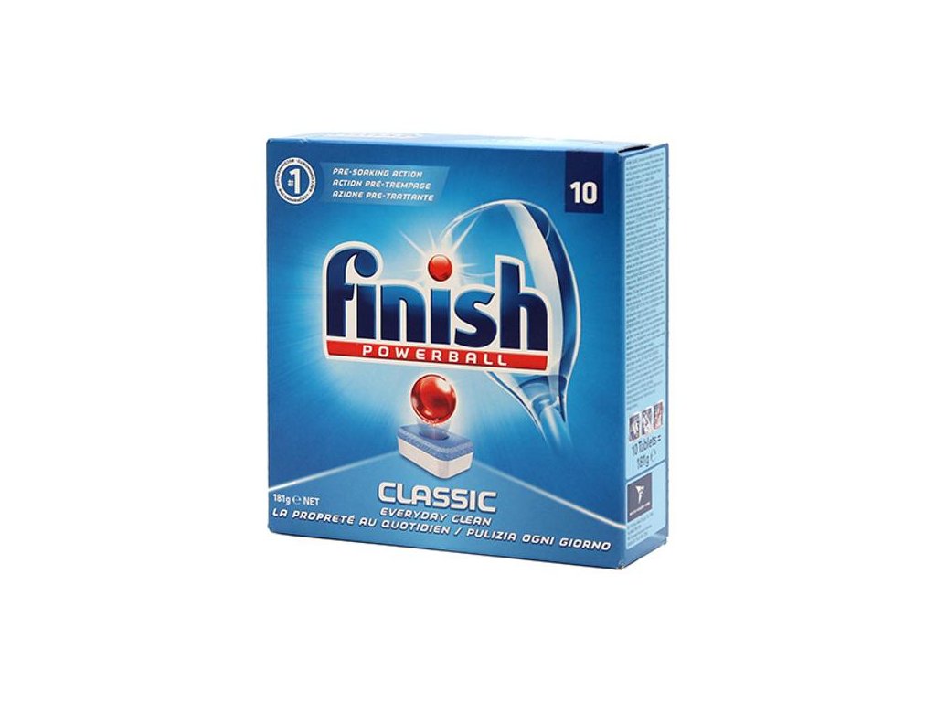 Calgonit Finish Powerball Classic tablety do umývačky riadu 10 kusov. Gulička Powerball predmočí a zjemní nečistoty a silný detergent odstráni všetky zvyšky jedla.