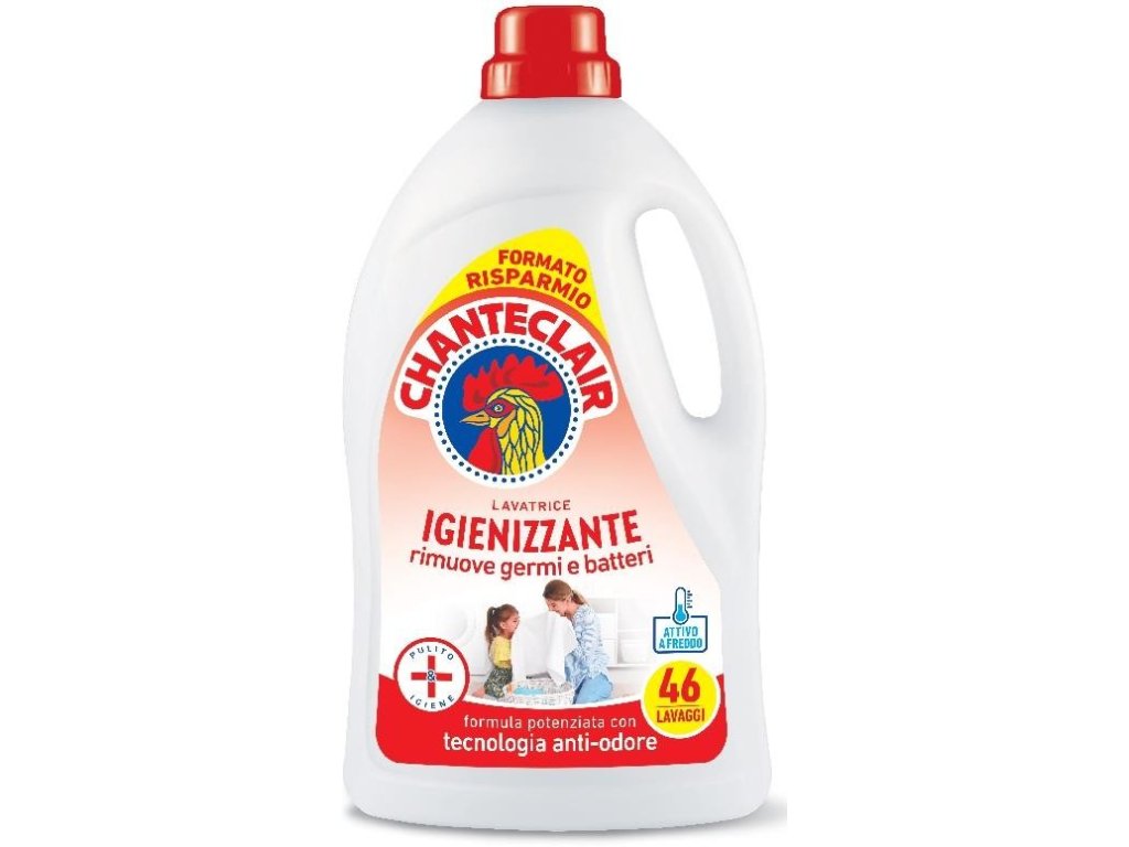Taliansky prací gél ChanteClair IGIENIZZANTE s objemom 2070 ml a s 46 pracími dávkami, ktorý je vysoko účinný proti odolným škvrnám a nečistotám a zároveň dezinfikuje a zabíja baktérie a vírusy. Vašu bielizeň a zanechá čistú a sviežu. Jeho koncentrované zloženie funguje aj pri nízkych teplotách. Produkt bol dermatologicky testovaný a je šetrný k pokožke.