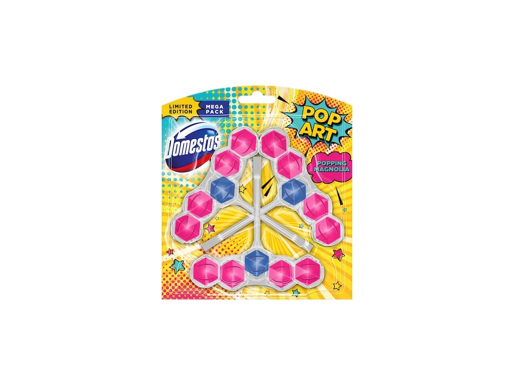 DOMESTOS WC blok zabraňuje vzniku vodného kameňa, zabíja všetky známe druhy baktérii. Poskytuje komplexnú starostlivosť o Vašu toaletu a každým spláchnutím ju zanecháva dlhodobo čistú a sviežu.