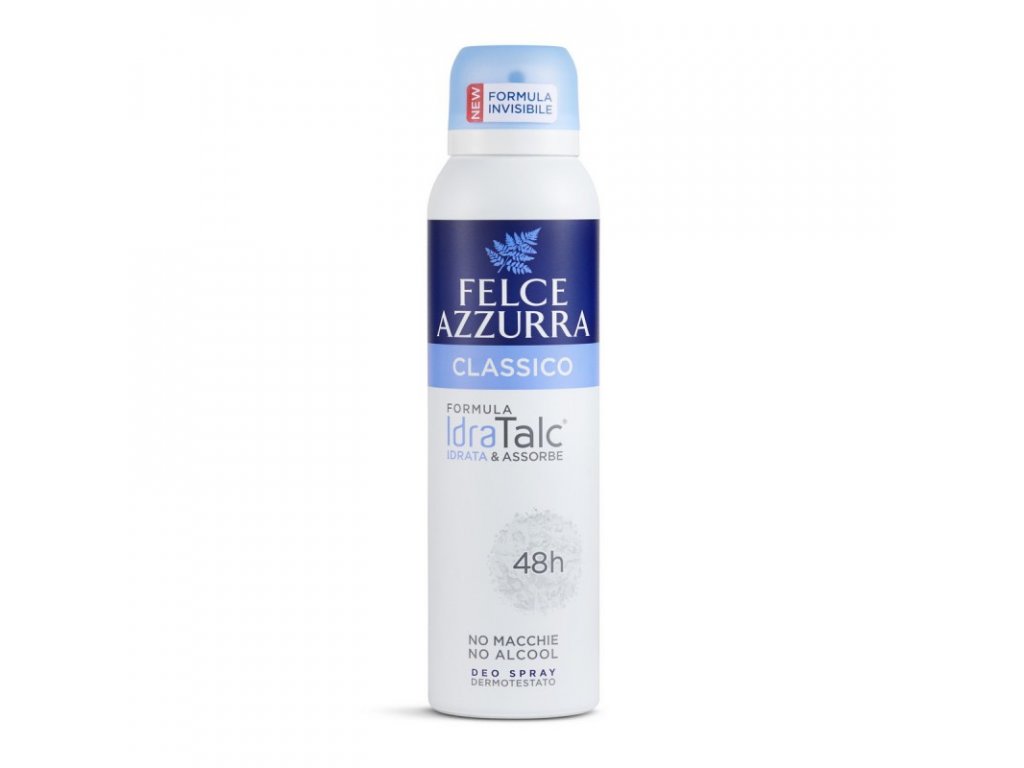 Dezodorant pre jemnú pokožku 150 ml Antiperspirant sa vyznačuje pútavou vôňou bieleho pižma v kombinácii s tónmi bieleho čaju. Felce azzurra, ktorá používa mastenec už takmer 100 rokov, začala z toho, aby vytvorila idratalc ® , inovatívny komplex, ktorý využíva absorpčnú silu mastenca a kombinuje ho