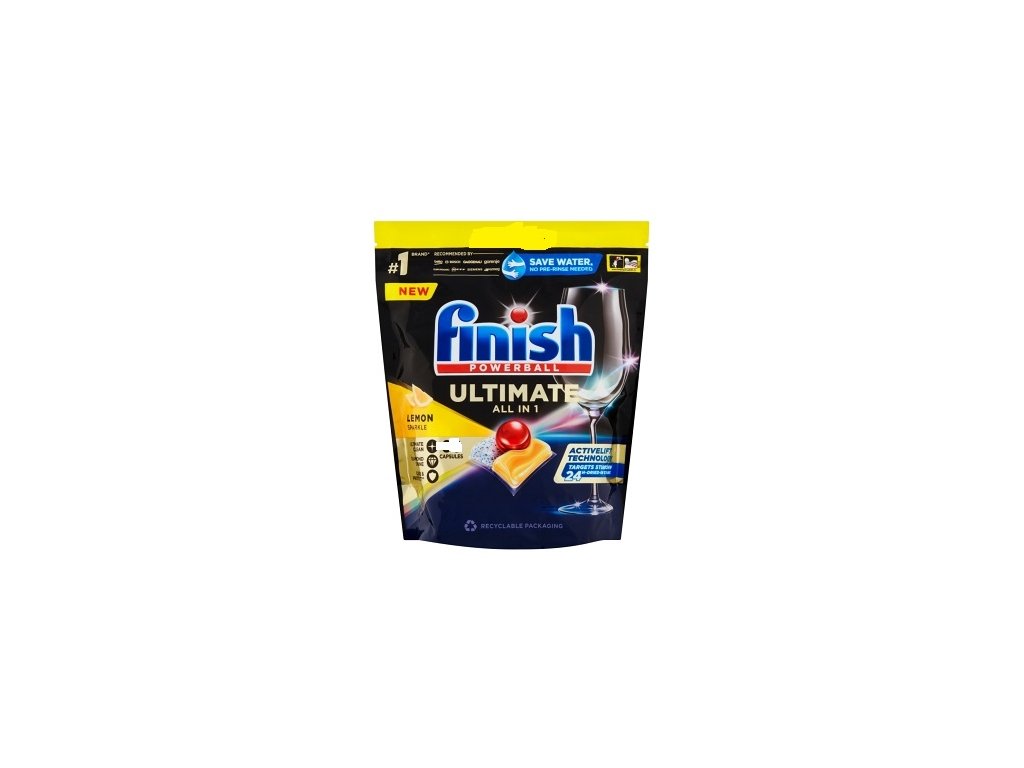 Inherentné zložky soli a leštidla sú účinné vo vode do tvrdosti 26 ° e (21 ° dH). Pokiaľ žijete v oblasti s extrémne tvrdou vodou, môžete vylepšiť výkon svojej umývačky pridaním soli značky Finish. Chráňte kvalitu kapsúl Ultimate All in 1 a po každom použití uzavrite obal. Na zaistenie najlepších výsledkov schnutia odporúčame použiť leštidlo značky Finish.