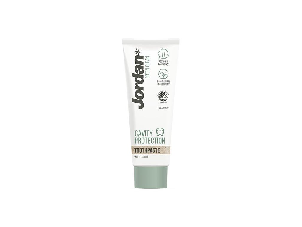 Zubná pasta Jordan Green Clean obsahuje 98 % starostlivo vybraných prírodných ingrediencií. Je obohatená o xylitol a extrakt z listov zeleného čaju. Je jemná, napriek tomu veľmi efektívna v ochrane pred zubným kazom. Vhodná aj pre vegánov. Ohľaduplná k vám aj k životnému prostrediu - 50 % tuby bolo vyrobených z recyklovaného plastu!Jordan Green Clean zubná pasta, 75 ml - 98 % prírodných ingrediencií