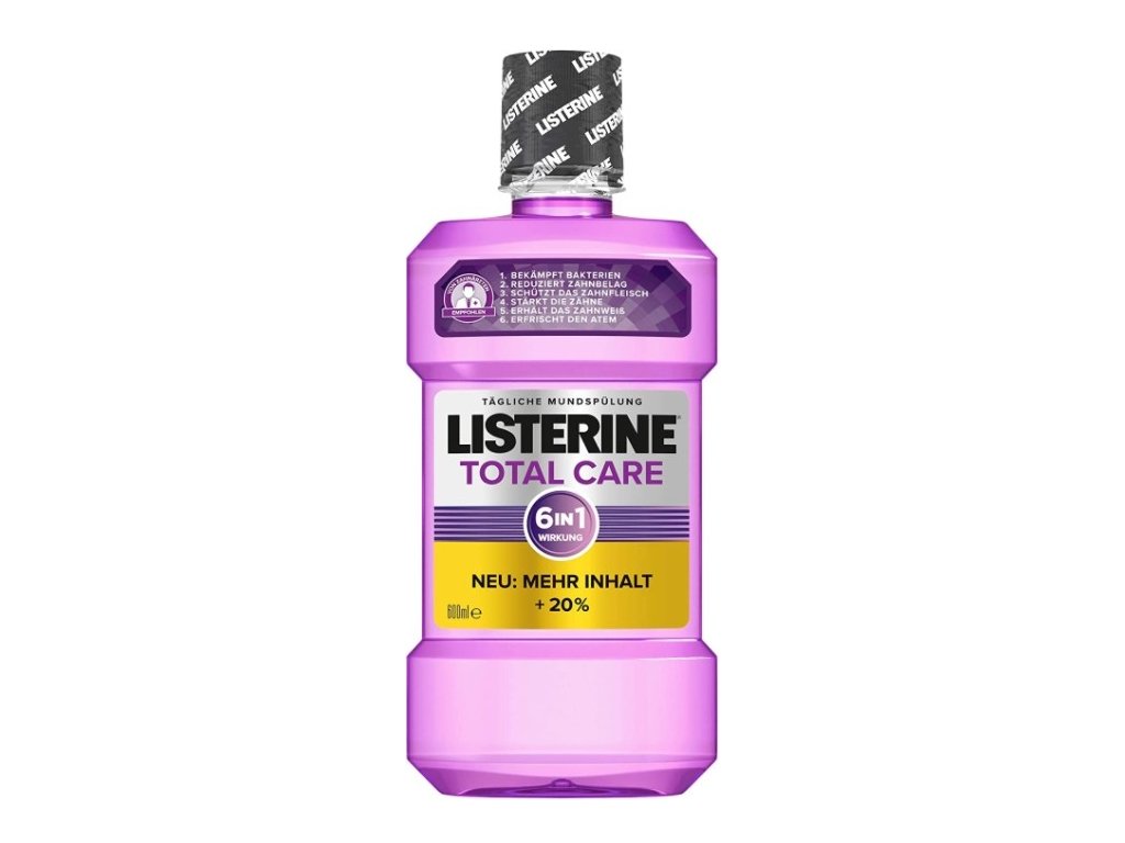 Antiseptická ústna voda Listerine ničí baktérie spôsobujúce zubný povlak a nepríjemný zápach z úst. Pomáha udržiavať prirodzene bielu farbu zubov a svieži dych. Redukuje zubný povlak, hlavnú príčinu ochorení ďasien, a zabraňuje jeho vzniku.