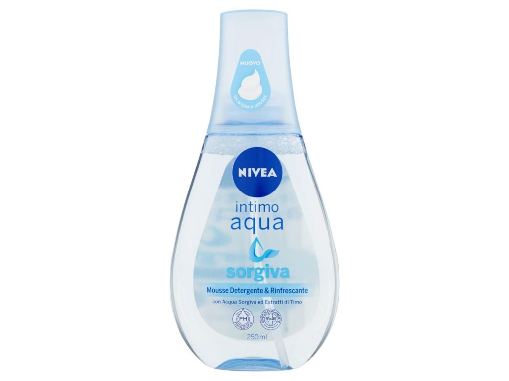 Nivea intimo aqua jarná čistiaca a osviežujúca pena: nechajte sa prekvapiť od Nivea Intimo Aqua! Vzorec so všetkou čistotou pramenitej vody sa premieňa na jemnú čistiacu penu, ktorú je možné ľahko opláchnuť. Pena, obohatená o výťažky z tymiánu, má zvlhčujúci účinok pre vaše každodenné pohodlie. Gynekologicky testované