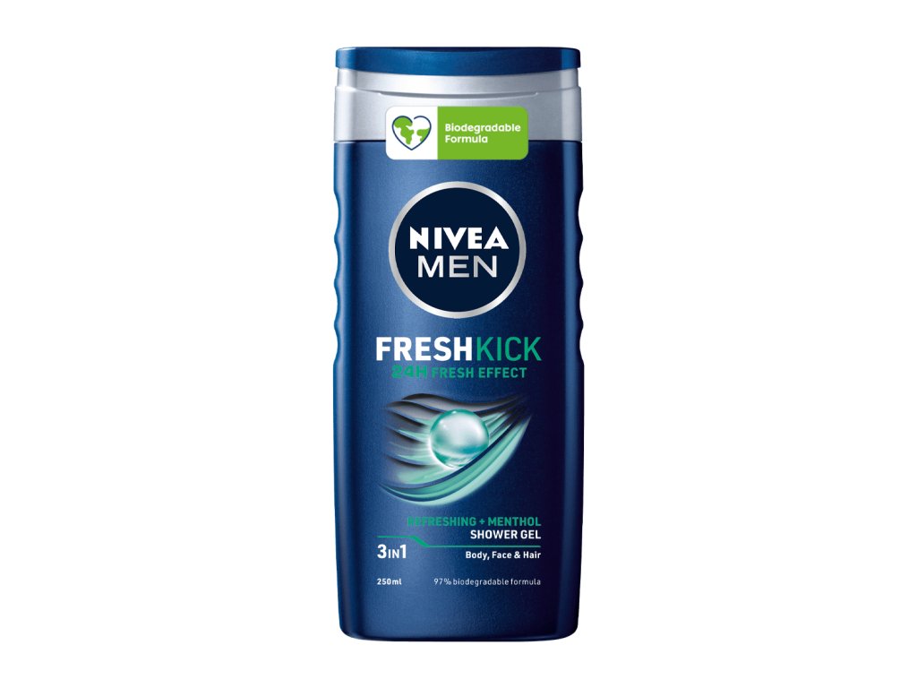 Cítite sa ako v jednom ohni? Doprajte si ľadové osvieženie pre tvár, telo i vlasy vďaka zloženiu obohatenému o chladivý mentol. Vaša pokožka zostane svieža či už pri športe alebo počas náročného dňa. Užite si po každom sprchovaní nový príliv energie a dlhotrvajúci pocit sviežosti. Nerobte kompromisy a spoľahnite sa na účinné zloženie: NIVEA Sprchový gél pre mužov Fresh Kick.