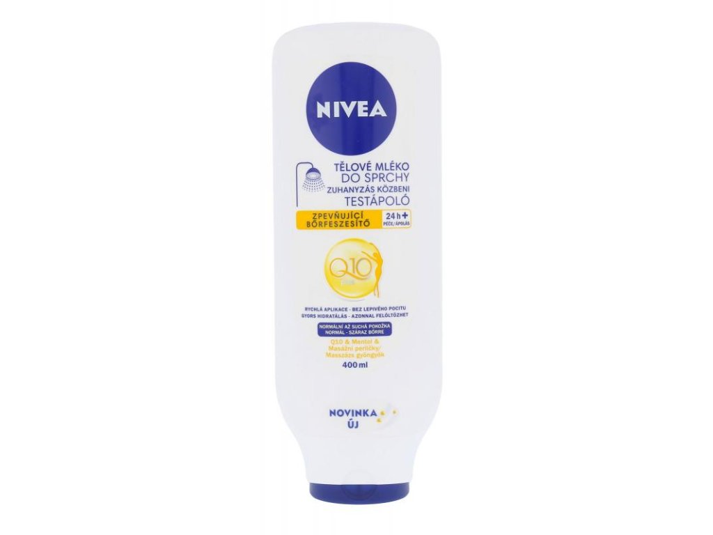 Telové mlieko do sprchy **Nivea In-Shower Firming Lotion Q10** poskytuje pokožke hlbkovú starostlivosť a hydratácii. Účinné zloženie s koenzymom Q10 se okamžite vstrebáva a zapôsobí na Vašu pokožku. Po použití bude pokožka jemná a hebká.