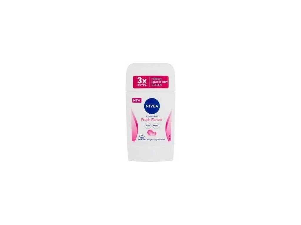 NIVEA Antiperspirant Stick Fresh Flower poskytuje dlhotrvajúci pocit sviežosti a príjemnú kvetinovú vôňu. Chcete si užívať každý deň bez akýchkoľvek obmedzení? Vyberte si antiperspirant NIVEA, ktorý vás udrží svieži a ochráni v každej situácii. Spoľahlivá 48-hodinová ochrana proti poteniu chráni pred nepríjemným zápachom a pretrvávajúcim potením. Pocíťte teraz všetky výhody radu Fresh Flower v pohodlnej forme tyčinky! Kožná tolerancia bola dermatologicky potvrdená. Objavte aj ďalšie antiperspiranty NIVEA. Výnimočná starostlivosť NIVEA: - Viac ako 100 rokov skúseností v starostlivosti o pleť - Prísady starostlivo vybrané podľa najvyšších štandardov kvality.