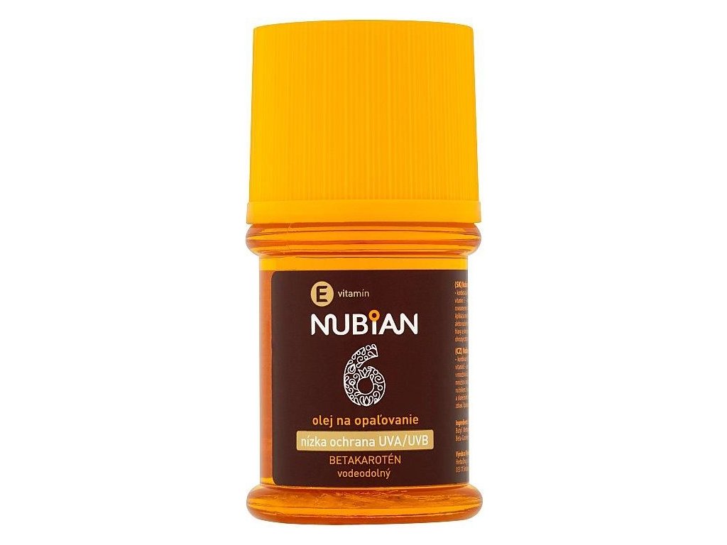 Olej na opaľovanie Nubian OF 6 – nízka ochrana s kombináciou UVA/UVB filtrov chráni pokožku pred slnečným žiarením.