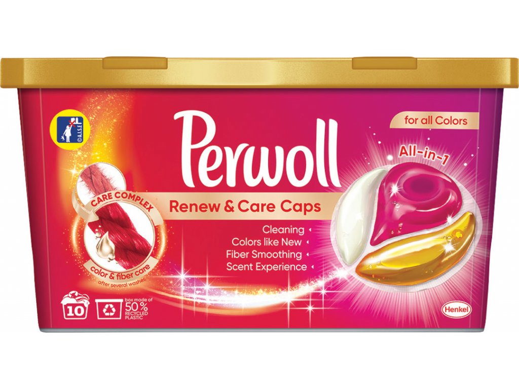 Milujte svoje oblečenie, starajte sa oň. Objavte nové pracie kapsuly Perwoll Renew & Care CAPS - tá najlepšia starostlivosť o vaše obľúbené odevy pohodlným spôsobom. Tieto nové trojkomorové kapsuly boli špeciálne vyvinuté, aby sa aktívne starali a obnovovali vaše oblečenie už od prvého prania. Nielenže šetrne čistia vaše oblečenie, ale zároveň obnovujú jeho žiarivé farby a vlákna.