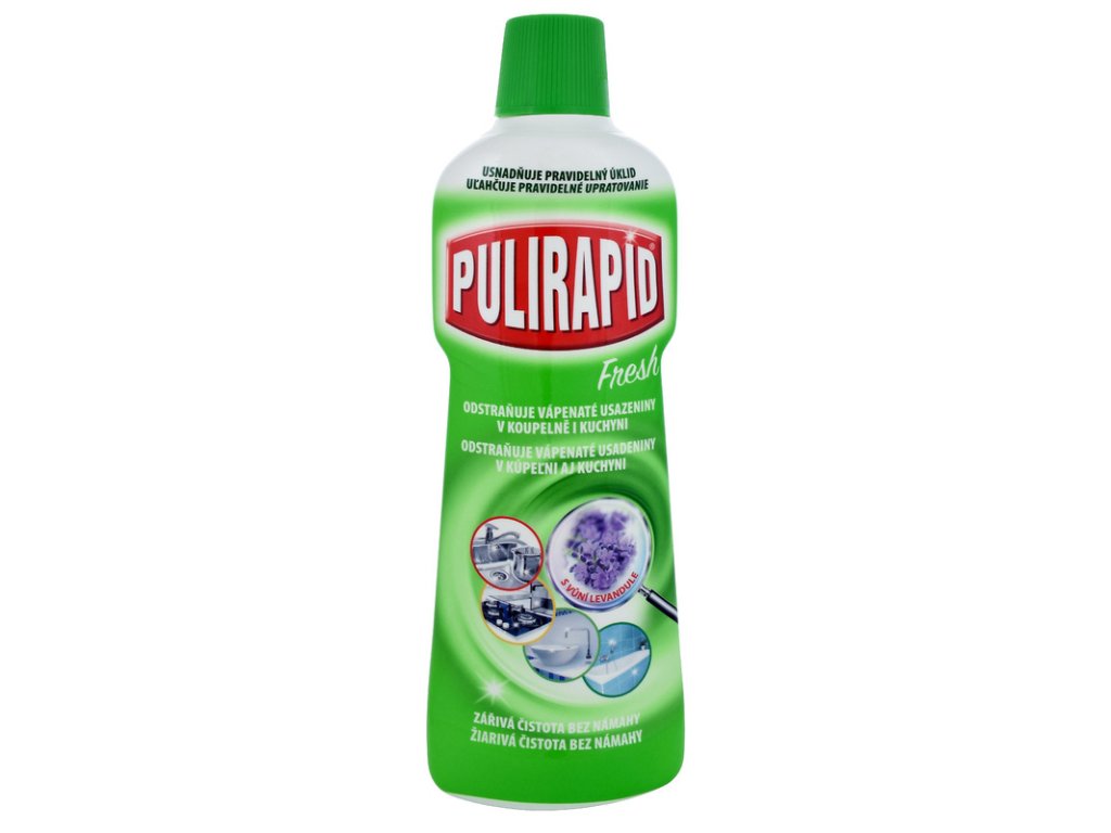Pulirapid Fresh s vôňou levandule čistí do vysokého lesku a odstraňuje vápenaté usadeniny, stopy mydla a hrdzu v kuchyni, kúpeľni a na veľkých povrchoch a zanechává provoňanú domácnosť sviežou vôňou levandule.
