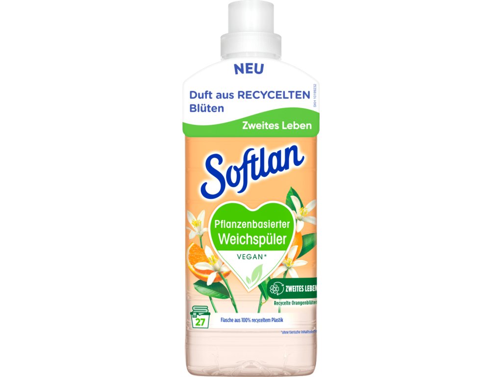 V prípade rastlinnej aviváže Softcy upcyklovanej oranžovej sa používajú zvyšky pomarančových kvetov z výroby pomarančovej šťavy, ktoré dostanú druhý život. Pretože budúcnosť udržateľnosti spočíva v regenerácii: vytváraní niečoho nového z vecí, ktoré už nie sú potrebné. Dermatologicky testovaná receptúra
