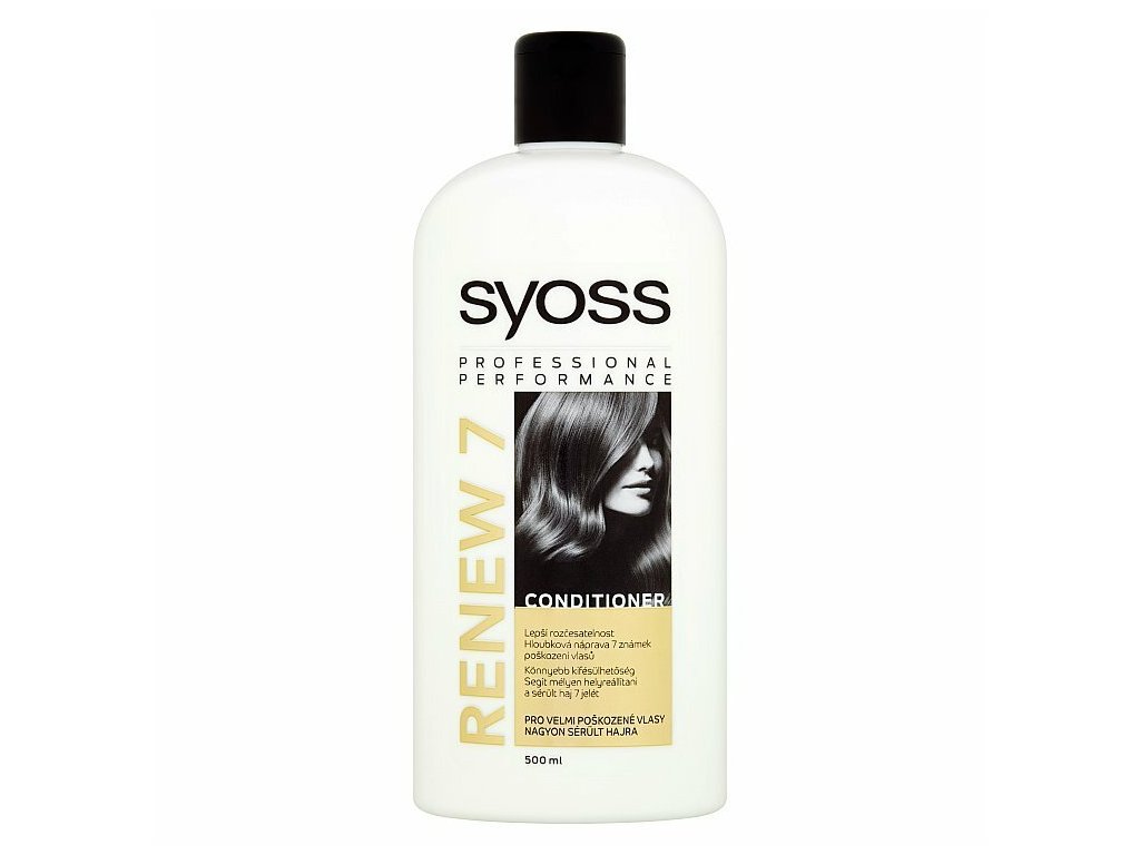 Syoss profesionálny výsledok. Syoss receptúry sú vyvinuté a testované kaderníkmi. Pre krásne vlasy ako zo salónu. Každý deň. Renew 7 balzam. Pre veľmi zničené vlasy. Regeneruje 7 znakov poškodenia vlasov: - Vyhladzuje vlasové vlákno pre lepšiu rozčesateľnosť - Bojuje proti lámavosti, rozštiepeným končekom, strate vlasovej hmoty, uzleniu, nepoddajnosti a proti suchým a matným vlasom