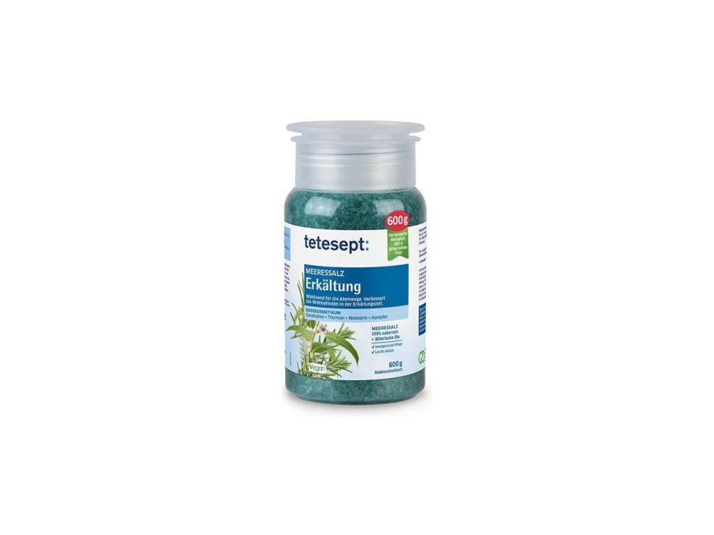 Tetesept Morská soľ Pre obdobie nachladnutí je kúpeľová prísada s blahodárnym účinkom na telo a dýchacie cesty v chladných ročných obdobiach.