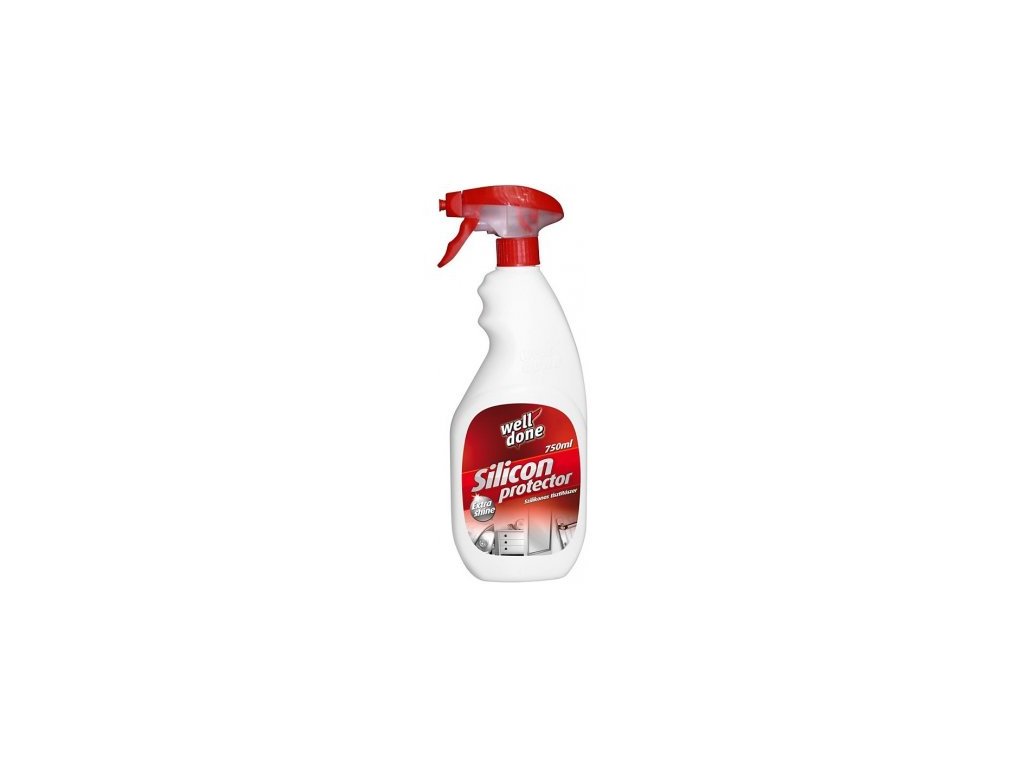 SILIKON PROTEKTOR . Vytvára ochrannú vrstvu, ktorá odpudzuje prach, mastnotu a nečistoty. . Je vhodný na ošetrenie a čistenie okien, zrkadla, nábytku, pneumatík a karosérie auta.