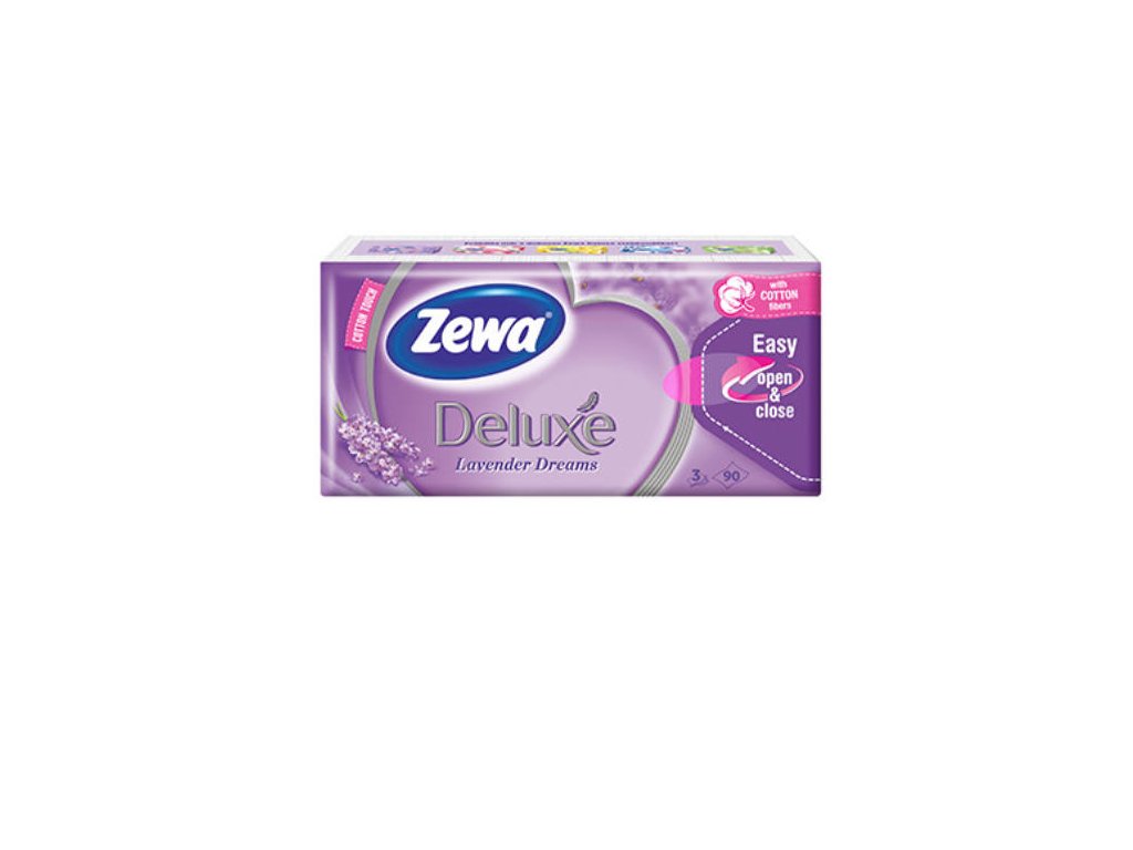 Zewa Deluxe Lavender Dreams papierové hygienické vreckovky 90ks